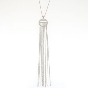 Cadena y colgante de Plata rodiada disco calado con flecos