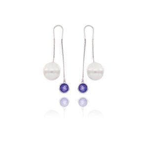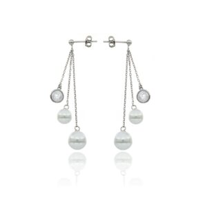 Pendientes de Plata rodiada con dos perlas y piedra blanca