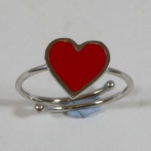 Anillo Ajustable de Plata Corazon Rojo