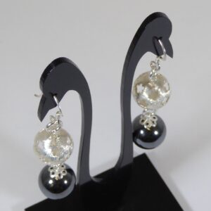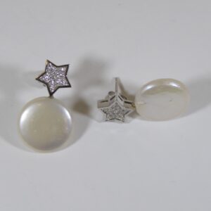 Pendientes de Plata cuello de cisne bola con estrellas y perla