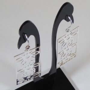 Pendientes de Plata Rectangular con Flores y gancho abierto