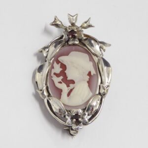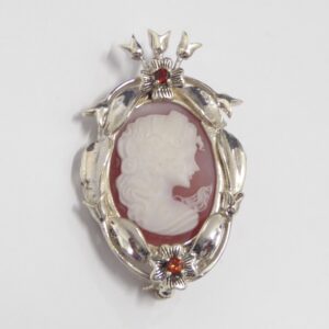 Colgante de Plata Camafeo/Broche con Piedras Color Blanco y Burdeo