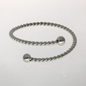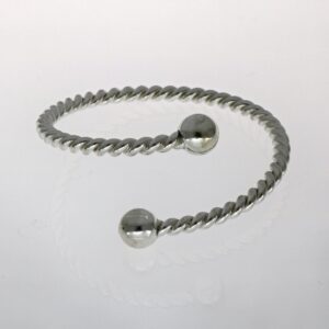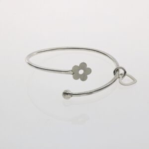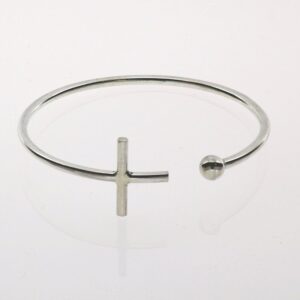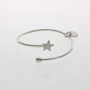 Pulsera de Plata rígida abierta con cologante, bola y estrella mate
