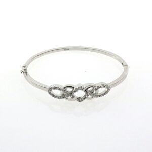 Pulsera de Plata rodiada luna con piedras y tres estrellitas