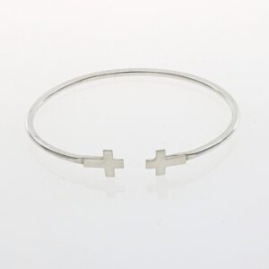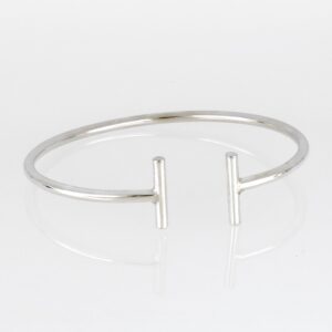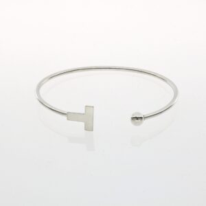 Pulsera Rigida de Plata abierta aro liso con T en los extremos. Tamaño grande