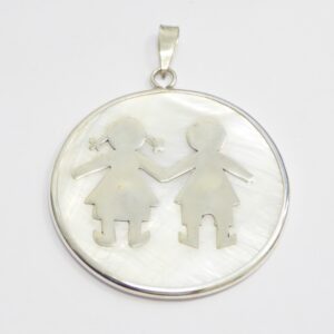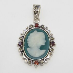 Colgante de Plata Camafeo con Piedras Color Blanco y Verde