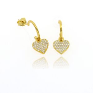 Pendientes de Plata Dorada Aro con colgante Corazón de piedras