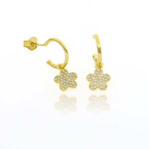 Pendientes de Plata Dorada Aro con colgante Flor de piedras