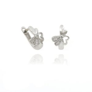 Pendientes de Plata Dorada aro con colgante Trebol de piedras