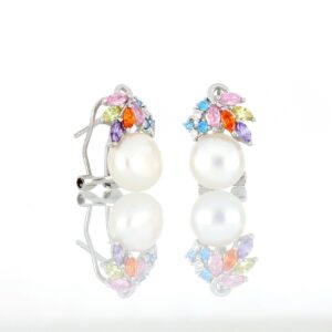 Pendientes de Plata con piedras de colores y perla