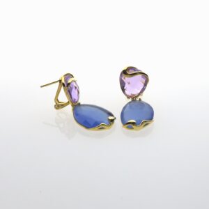 Pendientes de Plata dorada con piedras azul y rosa