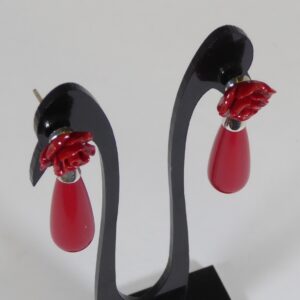 Pendientes de Plata Cuello de Cisne con Bola Imitacion Coral