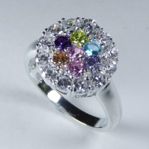 Anillo de Plata rodiada con piedras de colores
