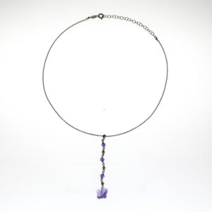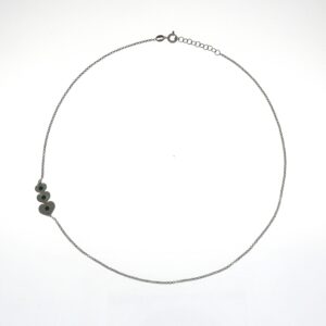 Gargantilla de Plata rodiada tres corazones con piedras verdes