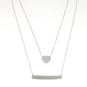 Gargantilla de Plata rodiada doble con placa lisa y corazon