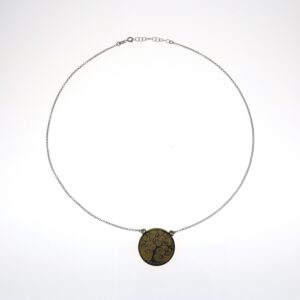 Gargantilla de Plata rodiada con disco dorado y arbol de la vida