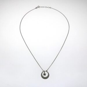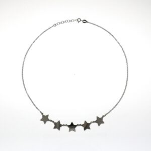 Gargantilla de Plata rodiada doble con placa lisa y estrella