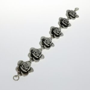 Pulsera de Plata con niño azul amarillo naranja y dos flores rosas