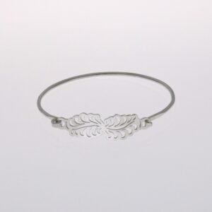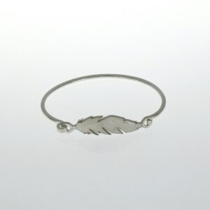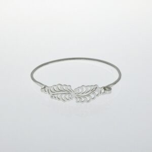 Pulsera de Plata rigida aro liso con hoja en cierre T. pequeño