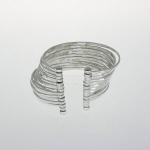 Pulsera de Plata rigida aro liso con llama calada en cierre