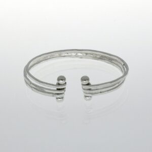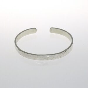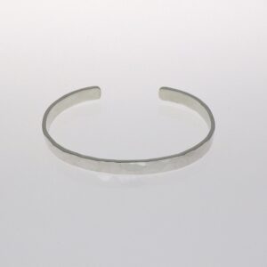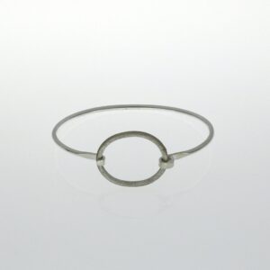 Pulsera de Plata rigida aro liso con ovalo martillado en cierre