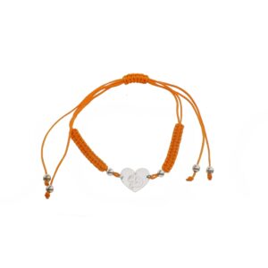 Pulsera de Plata hilo naranja corazón con inicial D
