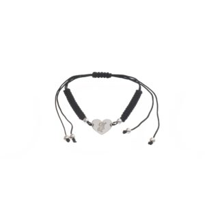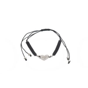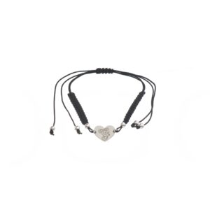 Pulsera de Plata hilo negro corazón con inicial P