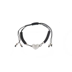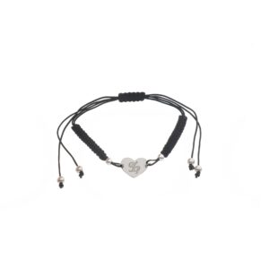 Pulsera de Plata hilo negro corazón con inicial J