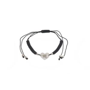 Pulsera de Plata hilo negro corazón con inicial M