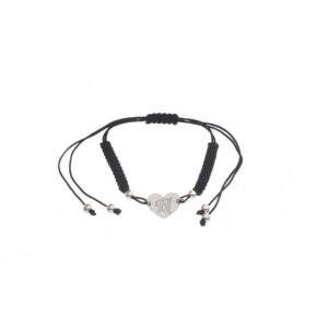 Pulsera de Plata hilo negro corazón con inicial N