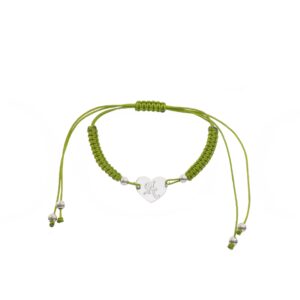 Pulsera de Plata hilo verde corazón con inicial J
