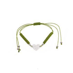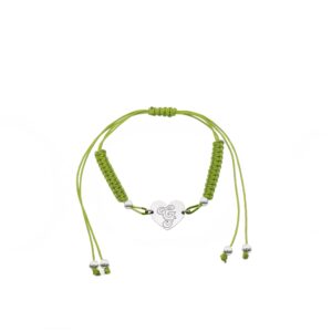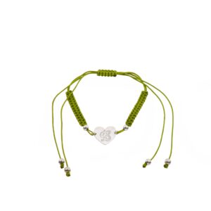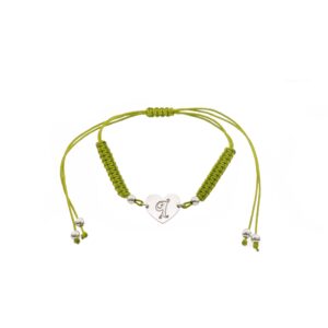 Pulsera de Plata hilo verde corazón con inicial F