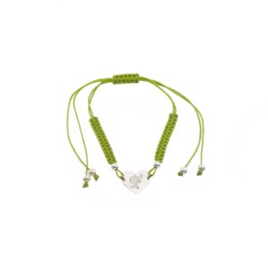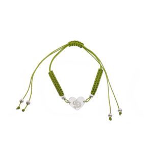 Pulsera de Plata hilo verde corazón con inicial I