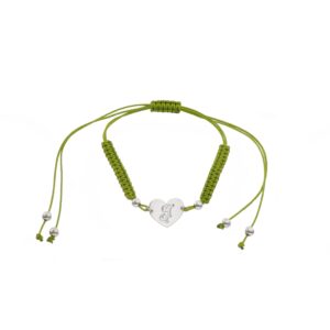 Pulsera de Plata hilo verde corazón con inicial E