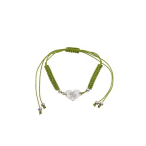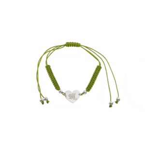 Pulsera de Plata hilo verde corazón con inicial M