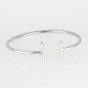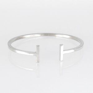 Pulsera Rigida de Plata abierta aro liso con T en los extremos. Tamaño mediana