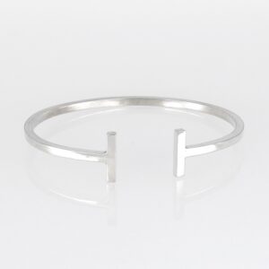 Pulsera Rigida de Plata abierta aro liso con T en los extremos. Tamaño pequeña