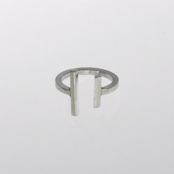 UncategorizedAnillo rodiado, ajustable. Hilo cuadrado de 1.90 mm. Con dos barras en las terminaciones de 15.35 y 11.80 mm.