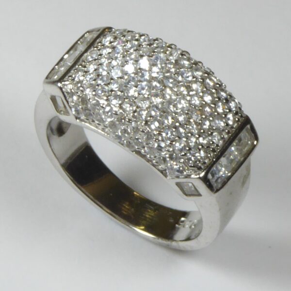 Anillo rodiado con circonitas blancas de 1 mm.