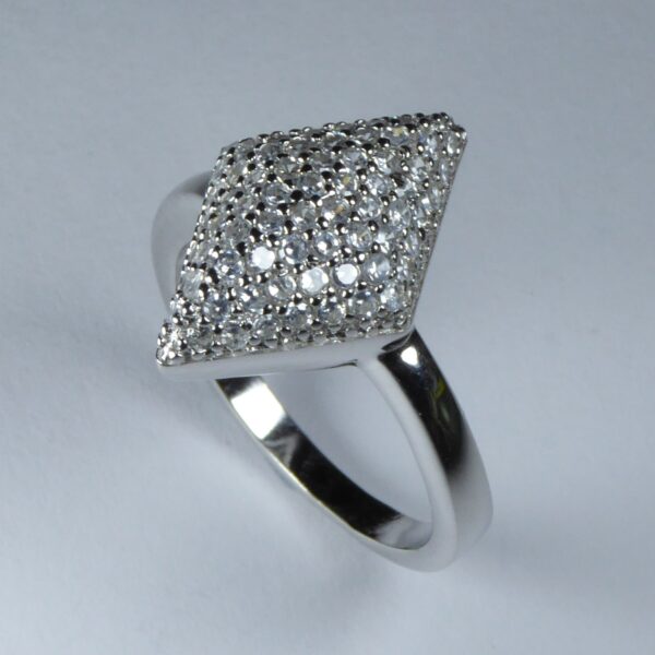 Anillo rodiado con un rombo de circonitas blancas de 1 mm.