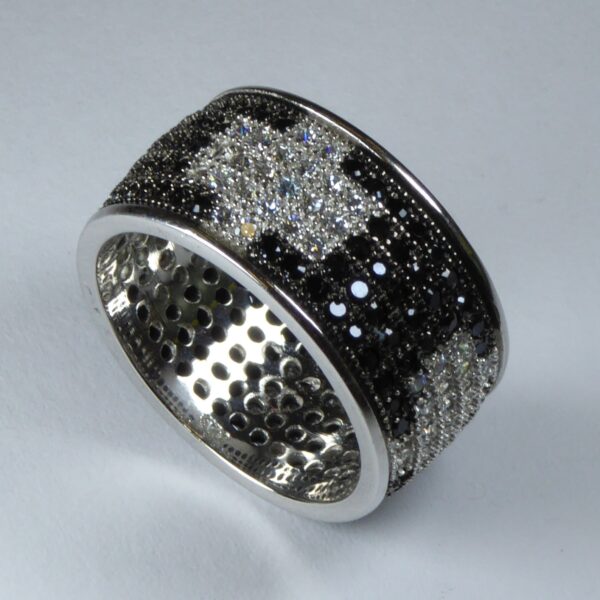 UncategorizedAnillo rodiado con circonitas blancas y negras dibujando la letra i de 2 mm.