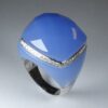 Anillo rodiado de piedra azul diamantada. Rodeándola una linea de circonitas blancas de 1 mm.