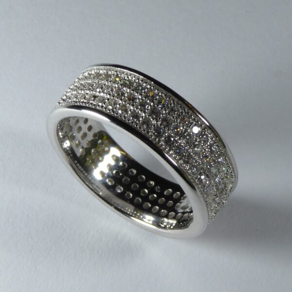 Anillo rodiado con dos filas de circonitas, en blanco de 1.50 mm.