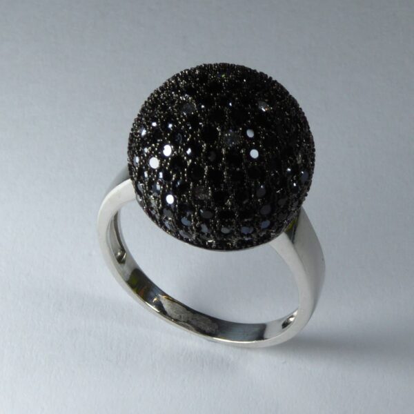 Anillo rodiado. Con una bola,de circonitas negras de 1 mm.