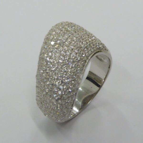 Anillo rodiado. Con circonitas blancas de 1 mm y 12 mm en su parte más ancha.