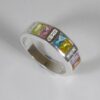 UncategorizedAnillo rodiado. Que combina circonitas blancas de 1.50 mm con circonitas de colores,oliva, rosa, aguamarina y champagne de 5 mm.