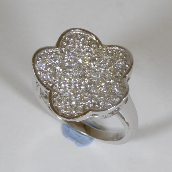 UncategorizedAnillo rodiado con circonitas en forma de flor con tumbo.