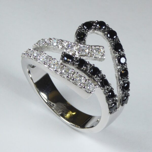 Anillo rodiado con circonitas blancas y negras de 2.50 mm.