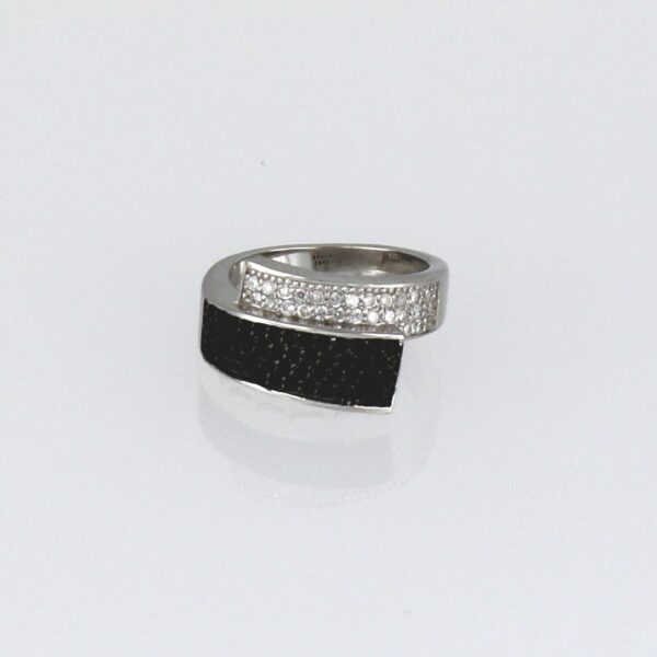 Anillo rodiado con circonitas blancas y negras de 1.50 mm.