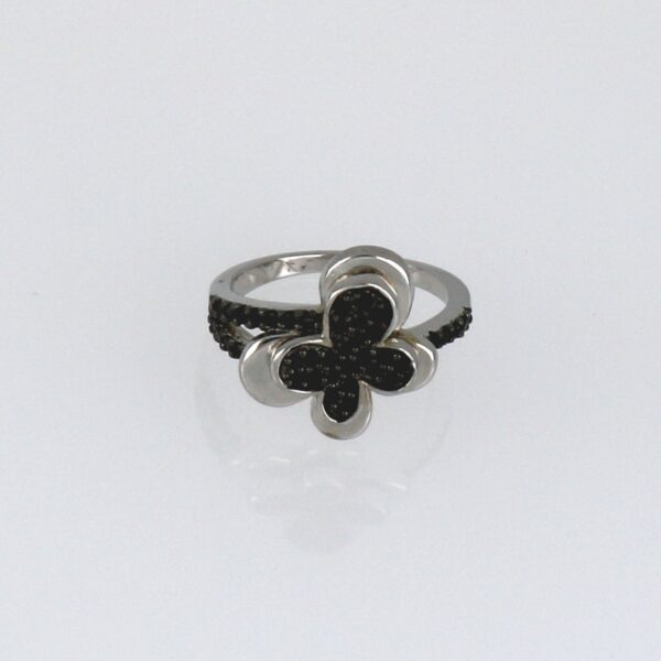 Anillo rodiado, Mariposa de circonitas negras sobre una base lisa con forma de mariposa.